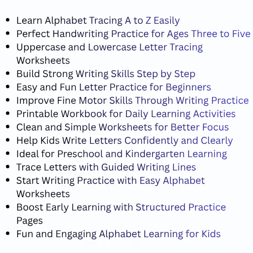Instead of boring repetition, this workbook uses guided tracing, visual cues, and clean layouts to make handwriting practice enjoyable for young learners.